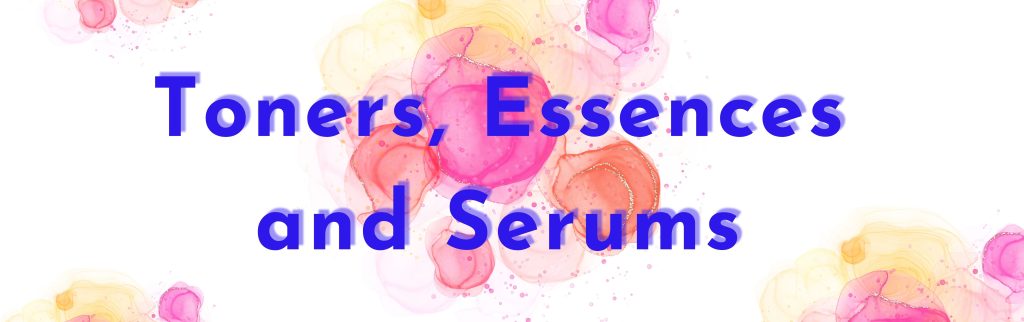 I use Toners, Essences and Serums after cleansing on an ordinary day, or after exfoliation if it is a day when I am using an acid, after I’ve rinsed it off (I leave it on for an hour then finish off my routine) before I top off with a moisturiser.
